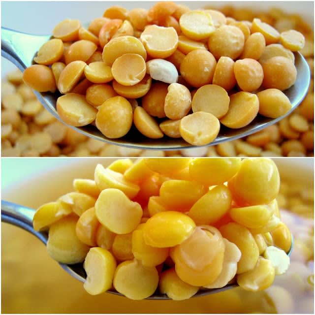 - In a bowl soak dry split peas with about 1 ½ cups of water. Leave this overnight. By morning the peas will double in size.